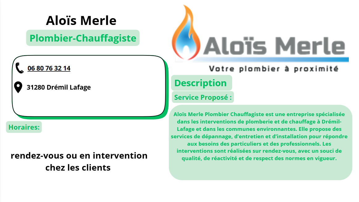 Annuaire des entreprises TRAVAUX ET ENTRETIEN Aloïs Merle, Plombier Chauffagiste Sinte internet : https://www.depannage-plomberie-balma.fr