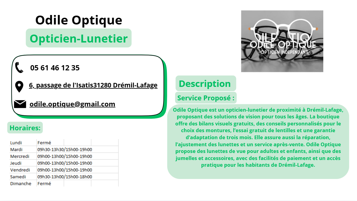 Annuaire des Entreprises COMMERCE Odile optique Site internet : https://odileoptiqueSur Instagram : https://www.instagram.com/odileoptique